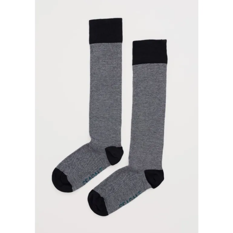 A single pair of our new longer length socks. In beautifully soft and breathable organic cotton, perfect for keeping your legs warm in the winter. In a choice of Seasalt stripes.